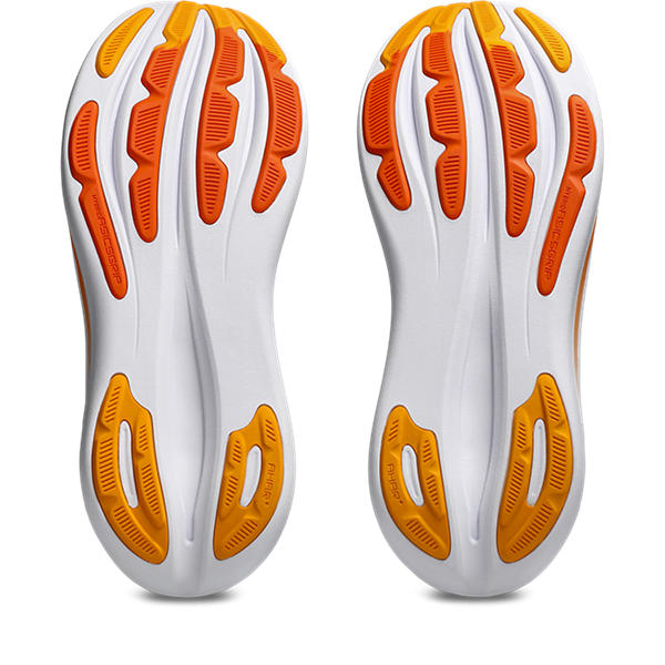 The midsole features a combination of FF BLAST PLUS cushioning and PureGEL technology. These components help create a lightweight and soft cushioning experience that feels like you're landing on clouds.